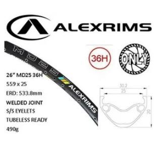 Number of RIM 26" x 25mm - ALEX MD25 - 36H - (559 x 25) - Schrader Valve - Disc Brake - D/W - BLACK - Eyeleted - Tubeless Ready - (ERD 533) - (Requires AV tubel currently available to order from Online Warehouse: 74