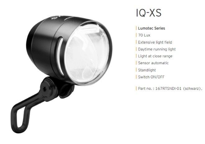 BUSCH & MULLER Dynamo LED Front Light - Alloy Lumotec IQ-XS, BLACK, DRL, Sensor, Switch, Standlight, 70LUX