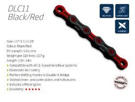 CHAIN - 11 Speed - KMC DLC11 - 118L - RED/BLACK - DLC Diamond Hard - X-Superlight - w/Connect Link