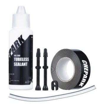 Number of CHEPARK Tubeless sealant set, 250ml Sealant, 1 x 35mm width tape, 2 x 40mm valves, Valve Core Removal Too currently available to order from Online Warehouse: 19