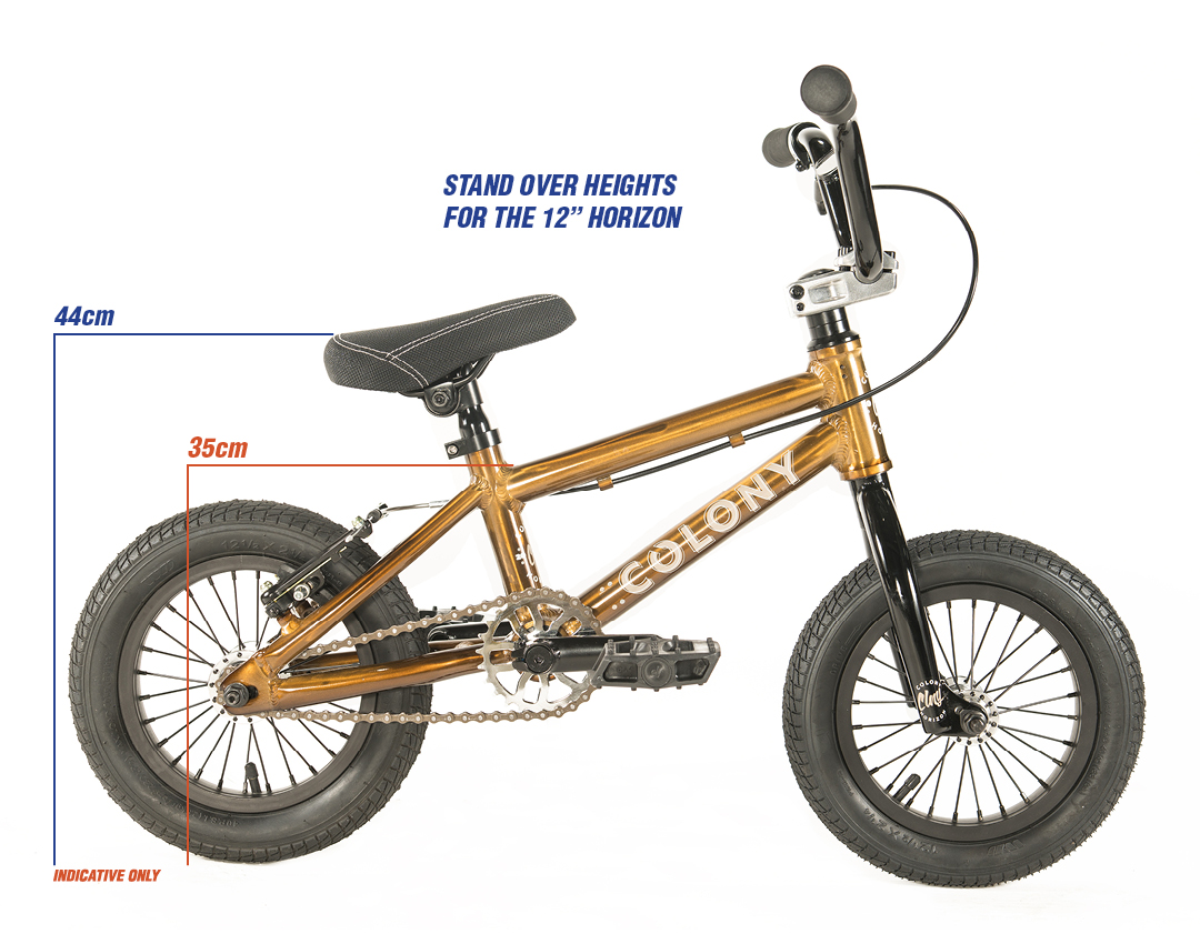 The Colony Horizon 12" Micro Freestyle BMX bike sets a new standard for young riders. Engineered with precision, it boasts a lightweight yet sturdy aluminium frame, ensuring strength and durability without compromising agility. The scaled down geometry is perfect for smaller riders, providing exceptional control and comfort. High quality components, including sealed bearings and responsive brakes, make for a smooth and reliable ride. Whether your child is just starting out or already mastering their first tricks, the Horizon 12" offers unparalleled performance and style, making it the ultimate choice for budding young BMX enthusiasts. Suitable for young riders approximately 70 to 95cm in height or two to five years of age.