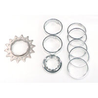 CONVERSION KIT - Single Speed, FLANGED CR-MO Drive Ring, 14T Lock Ring & Alloy Spacers (7 Spacers + Lockring)