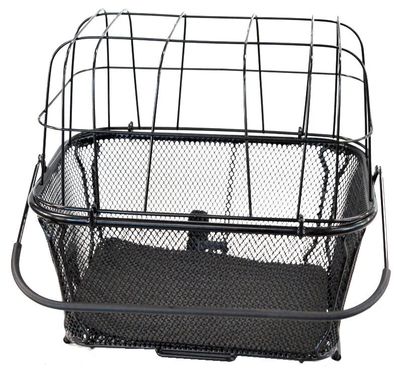 BASKET - Large REAR - Pet Carrier, Q/R Base, Includes Dome wire "clip in" Lid, Padded Base & Anchor Strap, 40cm x 30cm x 35cm