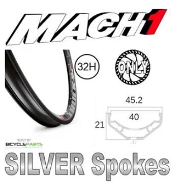 WHEEL - 27.5/650B Mach1 Trucky-40 32H P/j Black Rim, 8/11 SPEED 12mm T/A (142mm OLD) 6 Bolt Disc Sealed Novatec Black Hub, Mach 1 SILVER Spokes