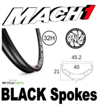 WHEEL - 27.5/650B Mach1 Trucky-40 32H P/j Black Rim, FRONT 3 in One (100mm OLD) 6 Bolt Disc Sealed Novatec Light Weight Black Hub, Mach 1 BLACK Spokes