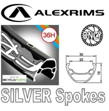 WHEEL - 26" Alex FR30 36H P/j Black Rim, FRONT 15mm T/A (100mm OLD) 6 Bolt Disc Sealed Novatec Black Hub, Mach 1 SILVER Spokes