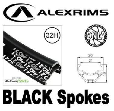WHEEL - 26" Alex MD21 32H Black Rim, SCREW-ON MULTI Q/R (135mm OLD) 6 Bolt Disc Loose Ball Joytech Black Hub, Mach 1 BLACK Spokes