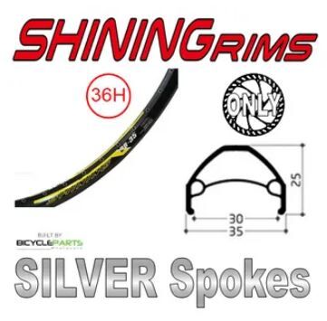 WHEEL - 26" Shining DB-35 36H P/j Black Rim, FRONT DYNAMO Q/R (100mm OLD) 6 Bolt Disc Sealed SP Black Hub, Mach 1 SILVER Spokes