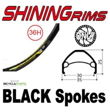 WHEEL - 26" Shining DB-35 36H P/j Black Rim, FRONT DYNAMO Q/R (100mm OLD) 6 Bolt Disc Sealed SP Black Hub, Mach 1 BLACK Spokes