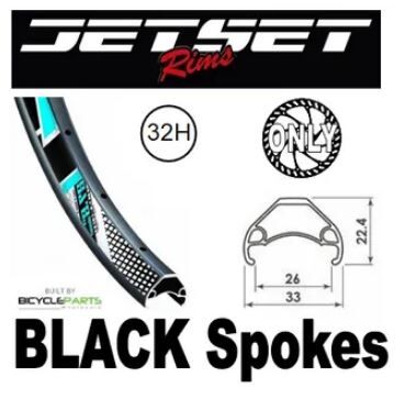 WHEEL - 27.5 / 650B Jetset HC-E331 32H P/j Matt Black Rim, 8/11 Speed Q/R (141mm OLD) 6 Bolt Disc Sealed Novatec Black Hub, Mach 1 BLACK Spokes