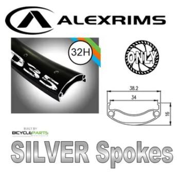WHEEL - 29er Alex MD35 32H P/j Black Rim, 8/11 SPEED 12mm T/A (148mm OLD) 6 Bolt Disc Sealed Bear Pawl Black Hub, Mach 1 SILVER Spokes