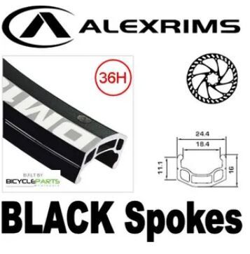 WHEEL 24" Alex DM-18 D/W Alloy Rim Non/Msw, Joytech 6 Bolt Q/R Alloy Disc Hub, Mach 1 Spokes, FRONT. ALL BLACK