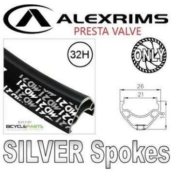 WHEEL - 29er Alex MD21 32H P/j Black Rim with Eyelets, FRONT 15mm T/A (110mm OLD) 6 Bolt Disc Sealed Bear Pawl Black Hub, Mach 1 SILVER Spokes