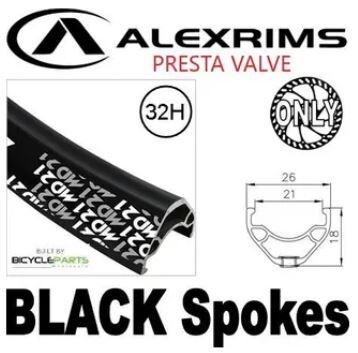 WHEEL - 29er Alex MD21 32H P/j Black Rim with Eyelets, FRONT 15mm T/A (110mm OLD) 6 Bolt Disc Sealed Bear Pawl Black Hub, Mach 1 BLACK Spokes