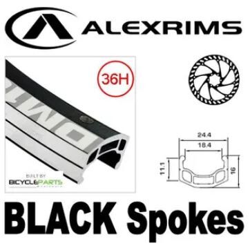 WHEEL 26" Alex DM-18 D/w Eyeleted Rim W/msw , Q/R ScrewOn MultiSpeed Disc Black Hub, BLACK Mach1 spokes . REAR.