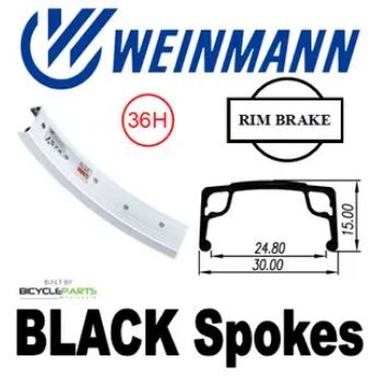 WHEEL - 16" Weinmann AS7X 36H P/j Silver Rim, FRONT 3/8" Nutted (100mm OLD) Loose Ball Joytech Silver Hub, Mach 1 BLACK Spokes