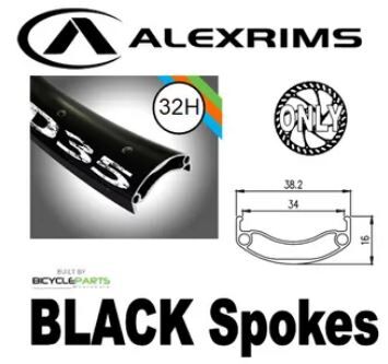 WHEEL - 29er Alex MD35 32H P/j Black Rim, FRONT 15mm T/A (110mm OLD) 6 Bolt Disc Sealed Bear Pawl Black Hub, Mach 1 BLACK Spokes