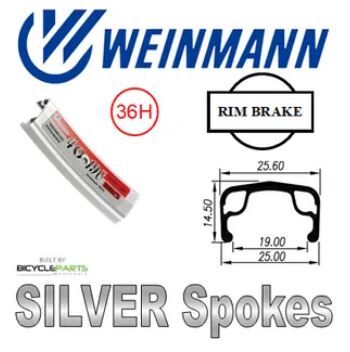 WHEEL - 700C Weinmann 4019C 36H P/j Silver Rim, 7/10 SPEED Q/R (135mm OLD) Loose Ball Joytech Silver Hub, Mach 1 SILVER Spokes