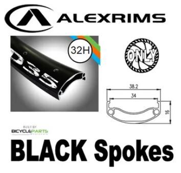 WHEEL - 29er Alex MD35 32H P/j Black Rim, FRONT 15mm T/A (110mm OLD) 6 Bolt Disc Sealed Novatec Boost Black Hub, Mach 1 BLACK Spokes