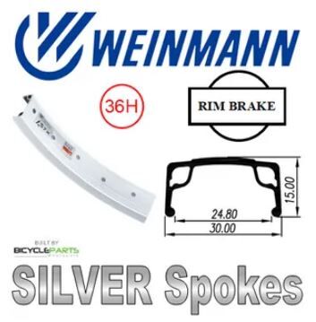 WHEEL - 16" Weinmann AS7X 36H P/j Silver Rim, FIXED/FREE Nutted (120-130mm OLD) Sealed Sturmey Silver Hub, Mach 1 SILVER Spokes