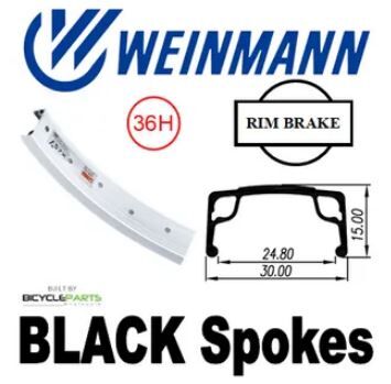 WHEEL - 16" Weinmann AS7X 36H P/j Silver Rim, FIXED/FREE Nutted (120-130mm OLD) Sealed Sturmey Silver Hub, Mach 1 BLACK Spokes