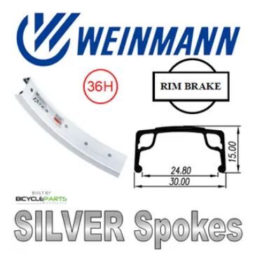 WHEEL - 20" Weinmann AS7X 36H P/j Silver Rim, Wheel Chair Q/R (124mm OLD) Sealed Silver Hub, Mach 1 SILVER Spokes