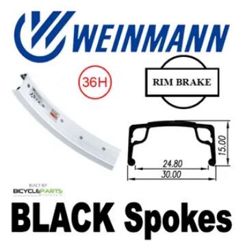 WHEEL - 20" Weinmann AS7X 36H P/j Silver Rim, Wheel Chair Q/R (124mm OLD) Sealed Silver Hub, Mach 1 BLACK Spokes