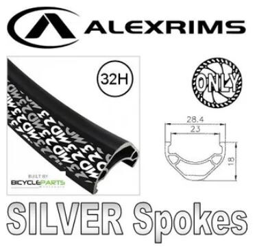 WHEEL - 29er Alex MD23 32H Black Rim, FRONT 15mm T/A (100mm OLD) 6 Bolt Disc Sealed Bear Pawl Black Hub, Mach 1 SILVER Spokes