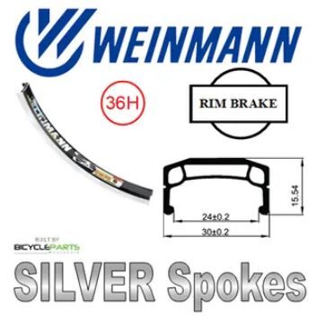 WHEEL - 20" Weinmann DM30 36H P/j Black Rim, FRONT 3/8" Nutted (100mm OLD) Loose Ball Joytech Black Hub, Mach 1 SILVER Spokes