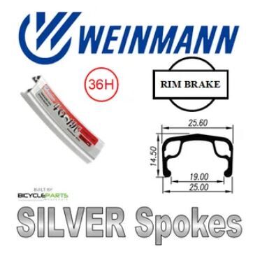 WHEEL - 700C Weinmann 4019C 36H P/j Silver Rim, 3 SPEED INTERNAL 3/8 Nutted (117mm OLD) Loose Ball Sturmey Silver Hub, Mach 1 SILVER Spokes. (Includes shift kit)