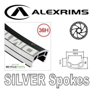 26" Alex DM-18 Black Eyeleted d/w Rim , Alloy Screw on 6 Bolt disc hub , Silver Mach 1 Spokes .