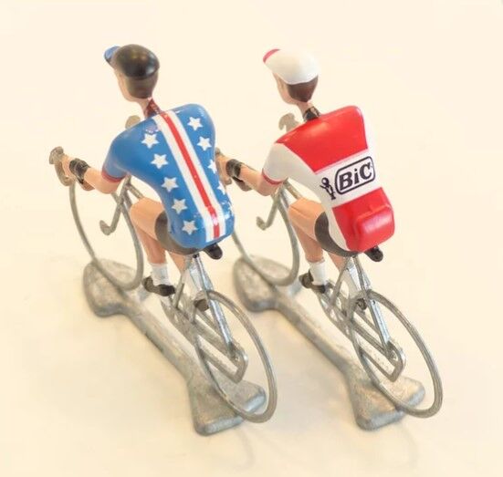 A FLANDRIENS Models, 2 x Hand painted Metal Cyclists, Bic jerseys