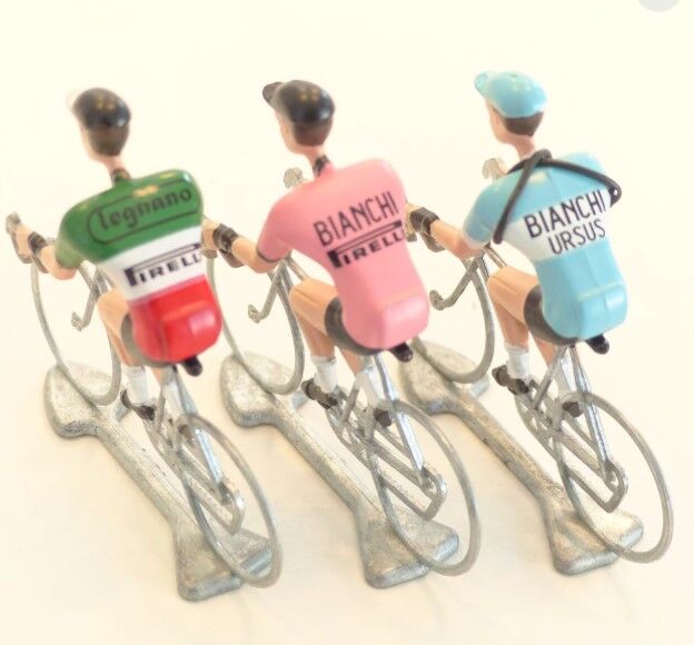 FLANDRIENS Models, 3 x Hand painted Metal Cyclists, Coppi in 3 types jerseys