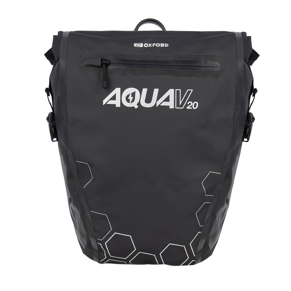 PANNIER BAG Aqua V 20L Single QR Pannier Bag Black, Waterproof roll top closure, Size: 42cm (H) x 32cm (upper) / 23cm (lower) (W) x 17cm (D) Oxford Pr