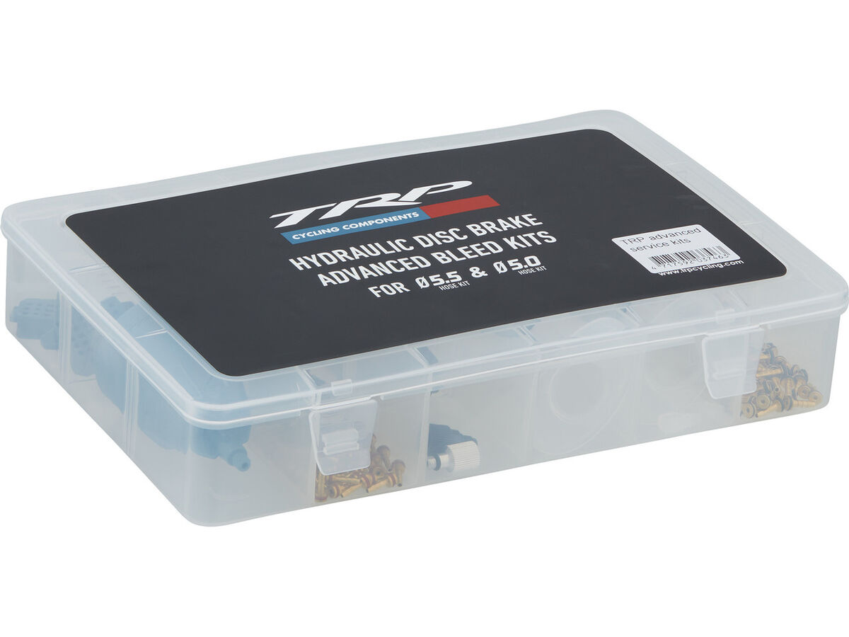 TRP Advanced bleed kit, for DIA. 5.0 and 5.5mm hose, inc syringe, bleed funnel, hose retainer,compression ferrules brass inserts