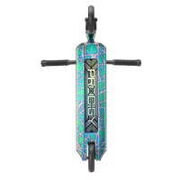 We kept some of the Prodigy classics - Aluminium light weight Reaper V2 bars, soft & durable TPR Handgrips and our solid Diamond IHC forks. The rest of the scooter got an overhaul with some MAJOR upgrades. The heart of the scooter is our deck, for the X Series we developed a brand NEW deck extrusion -The Extech extrusion. This extrusion has a stealth lower profile, wider internal walls, boxier construction featuring a high responsive concave.  The PX Headtube has been redesigned as well, increasing contact with the deck, a diamond cutout and streamlined profile.