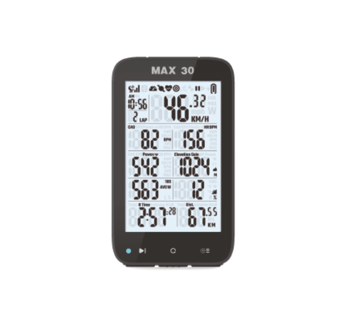 GPS cycle computer - Shanren MAX 30 - 3" screen, backlight, USB recharge, links to App & Strava