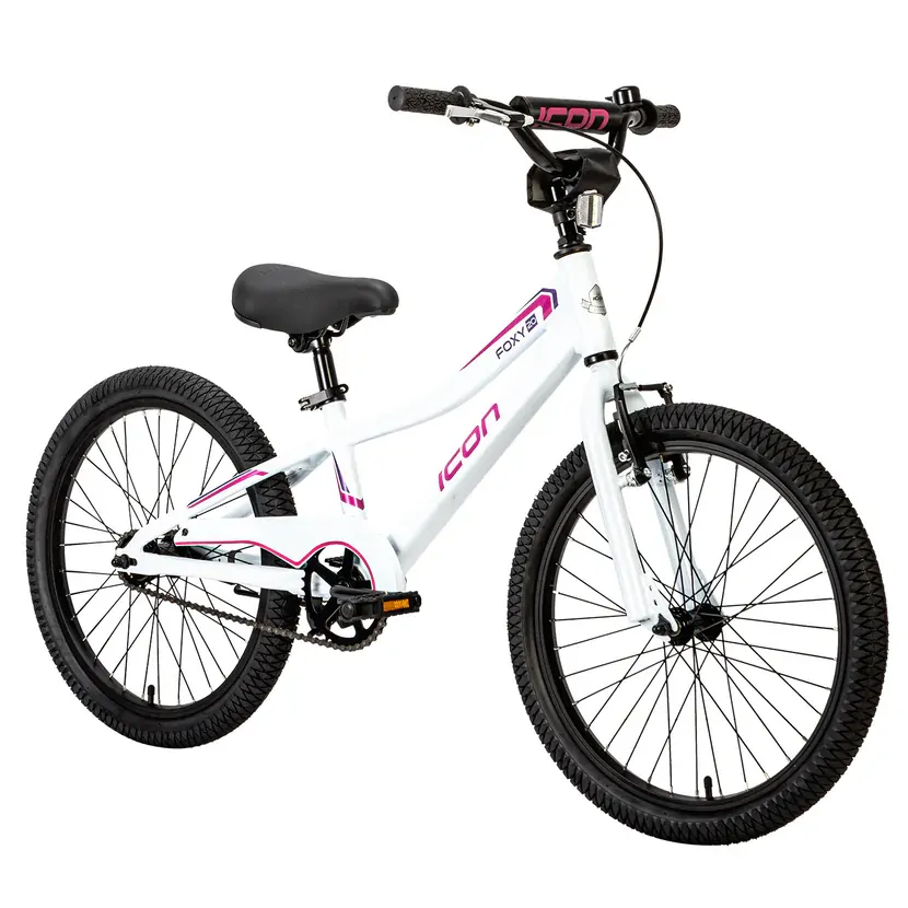The Icon Foxy girls bicycle in cloud blue is a quality, affordable 20" bike for your young lady. With a lightweight aluminium frame, adjustable seat and handlebar height and built in chain guard, the 20" Foxy is the ideal bike for young riders aged approximately 6 to 8 years of age. It's both lightweight, with a range of adjustment for growing riders and safe for first time users and parents alike. Buy your new Icon Foxy girls 20" bike in South East Melbourne at Casey Cycles, shop online with local home delivery available within 20km of Cranbourne or alternatively visit our friendly team in-store at 108 High Street Cranbourne and check out our range of children's 20 inch bikes in person.