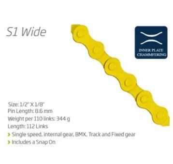 CHAIN - Single Speed - KMC S1 - 112L - YELLOW - w/Connect Link