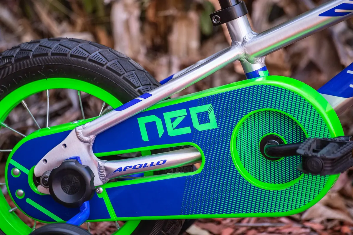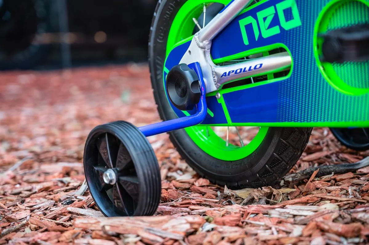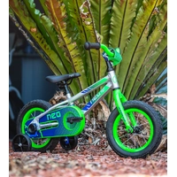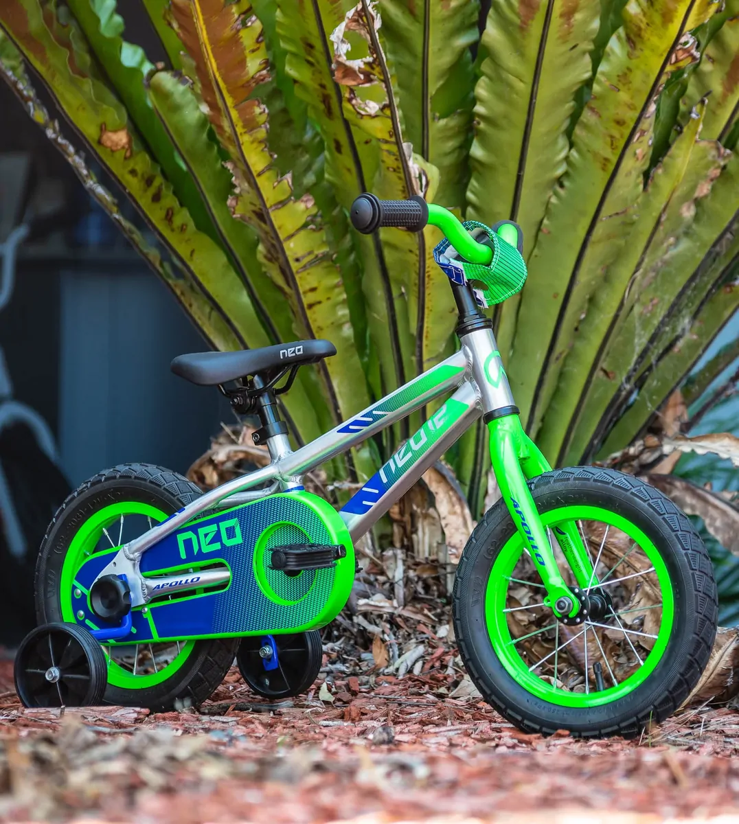 The Neo+ 12 boys 12" bike is designed to make your childs first experience on two wheels as easy as possible. Neo+ place a high emphasis on their bikes being lightweight, with aluminium frames, forks, headstem/handlebars and wheels, all designed to reduce the weight of the bicycle and make the riding experience easier for your little one. Bright eye catching colours, a comfortable saddle and handlegrips along with lightweight removeable training wheels put the finishing touches on a bike that both rider and parent will love! The Neo+ 12 boys 12 inch bicycle by Apollo is ideally suited to riders 2 to 4 years of age or approximately 85cm to 102cm tall and is available to buy now in Melbourne at Casey Cycles. Shop online with click and collect or free local delivery, alternatively you can visit our friendly team in-store today at Casey Cycles, South East Melbourne's premier family friendly local bike shop.