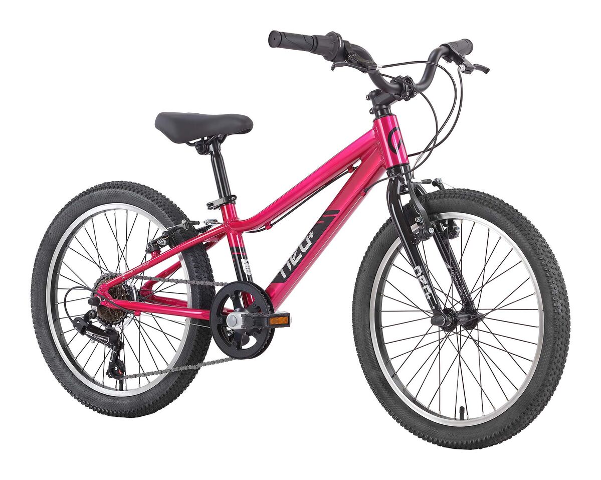 The Neo+ 20 girls 6 speed 20" bike is designed to make your childs first experience on a geared bike as easy as possible. Featuring a new Gen 3 durable, low step through aluminium frame, 20" wheels with 1.95" smooth rolling tyres, a comfortable padded saddle and handlegrips and easy to use 6 speed Shimano gear system, the Neo+ 20 boys 6 speed is a bike that both rider and parent will love! The Neo+ 20 boys 6 speed 20" bike in Chrome Pink by Apollo is ideally suited to riders 5 to 8 years of age or approximately 114cm to 132cm tall and is available to buy now in Melbourne at Casey Cycles. Shop online with click and collect or free local delivery, alternatively you can visit our friendly team in-store today at Casey Cycles, South East Melbourne's premier family friendly local bike shop.