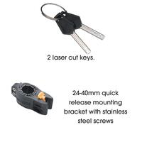 The On Guard OG Series Mini U Lock features a X2 double bolt locking mechanism, an 11mm hardened steel shackle in addition to a pick, pull and drill resistant cylinder. Also included is a 120mm x 10mm security cable for securing your wheels or other belongings.