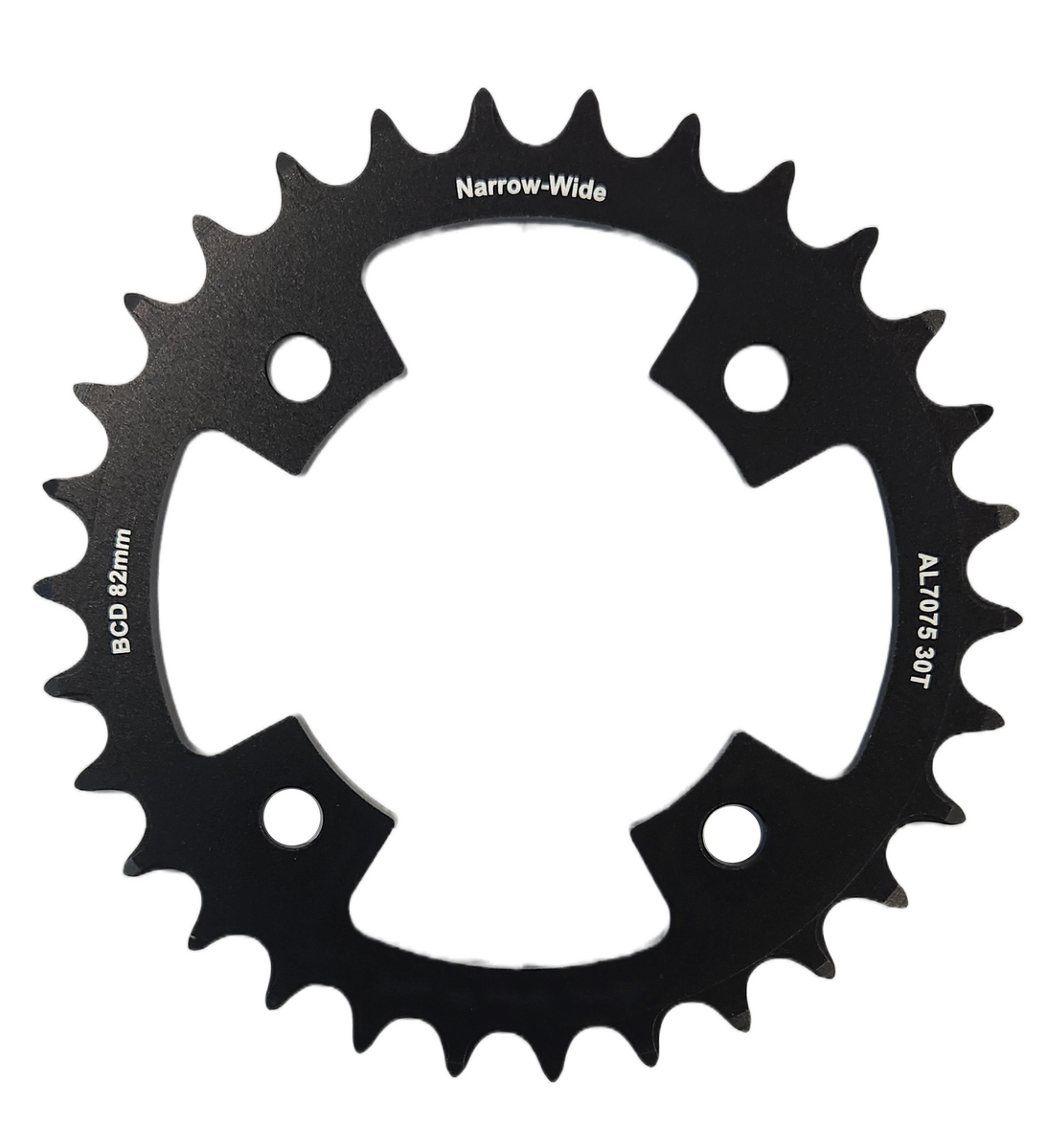 Chain ring only, 30T, AL7075, Black BCD: 82mm, narrow wide - (Bolt hole = 8mm)