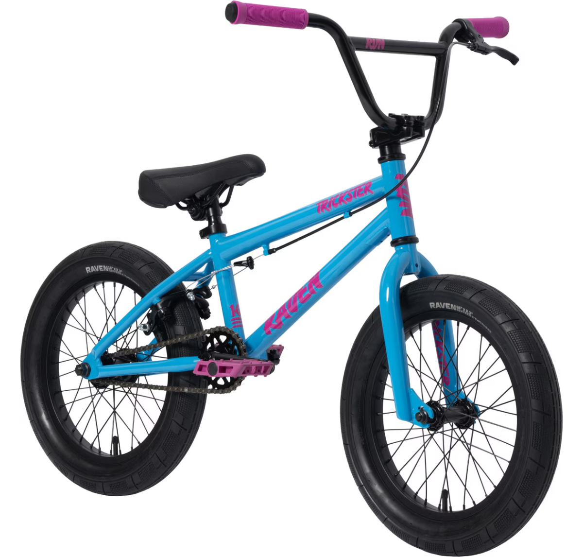 Introducing the new Raven Trickster 16" BMX bike, the perfect ride for young BMXers ready to level up their skills! The Trickster features a lightweight, durable frame with responsive handling, perfect for tackling tricks and jumps. With bold new graphics, grippy tyres, chromoly three piece cranks and double wall rims with sealed bearing hubs, the Trickster is ready for everything your little shredder can throw at it! Buy your new Raven Trickster 16" BMX bike in neon coral with Casey Cycles, shop online today with free local delivery throughout South East Melbourne or visit our Cranbourne local bike shop and check out our range of kids BMX bikes in person.