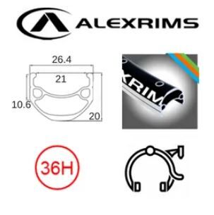RIM 29er x 21mm - ALEX DM21 - 36H - (622 x 21) - Schrader Valve - Rim Brake - D/W - BLACK - MSW - (E-bike Compatible) - (ERD 602)