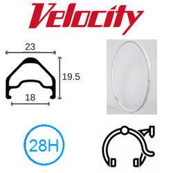 RIM 700c x 18mm - VELOCITY A23 - 28H - (622 x 18) - Presta Valve - Rim Brake - D/W - WHITE