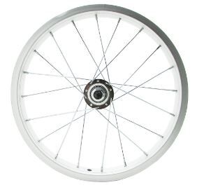 WHEEL 16" Single Wall Alloy 28H Silver Rim, FRONT Nutted 3/8" Steel Black Hub, Silver Stainless Steel Spokes.