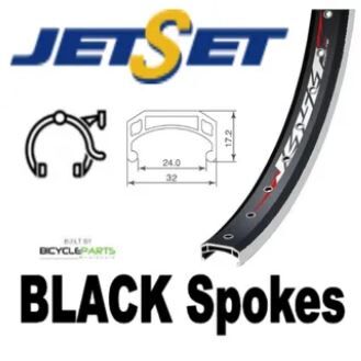 WHEEL - 24" Jetset CH-308A 36H Black Rim, 8/10 SPEED Q/R (135mm OLD) Loose Ball Joytech Black Hub, BLACK Spokes