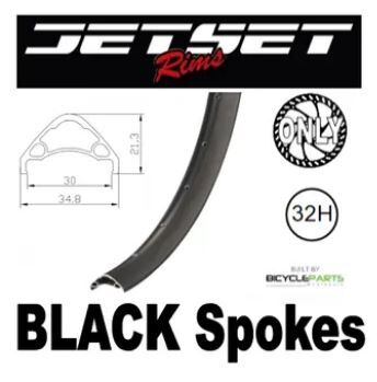 WHEEL - 27.5/650B Jetset AM-30 DH+ 32H S/j Black Rim, FRONT 15mm T/A (110mm OLD) 6 Bolt Disc Sealed Novatec Boost Grey Hub, BLACK Spokes