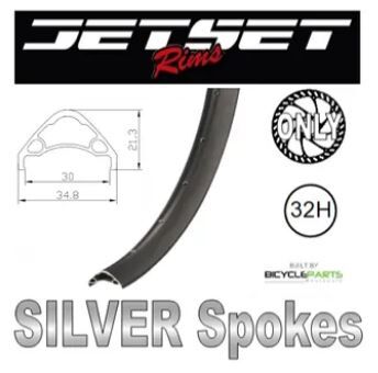 WHEEL - 27.5/650B Jetset AM-30 DH+ 32H S/j Black Rim, FRONT 15mm T/A (110mm OLD) 6 Bolt Disc Sealed Novatec Boost Purple Hub, SILVER Spokes